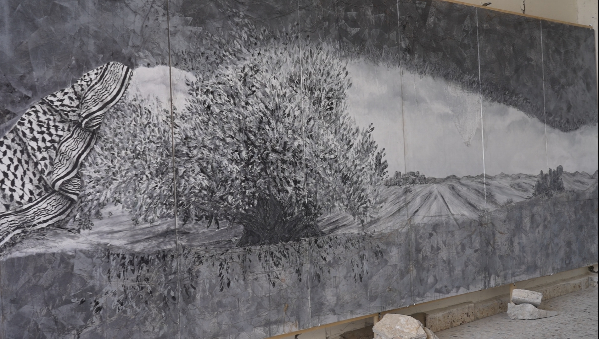 ناصر عجمي يفتتح معرضه “زيتون” على أنقاض منزله المدمَّر
